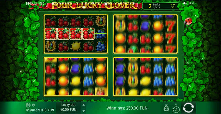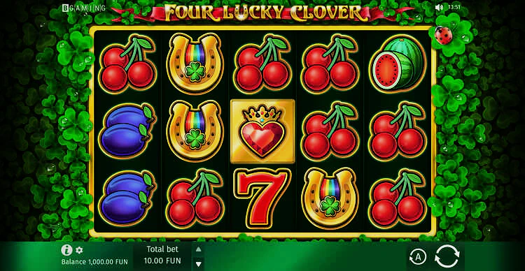 Тема удачи всегда актуальна для игровых автоматов. Этим воспользовался провайдер BGaming, создав слот Four Lucky Clover в 2020 году. Несмотря на лаконичный дизайн и незамысловатый геймплей, автомат может принести немало интересных впечатлений. Он имеет вайлд-символ и специальную бонусную механику.