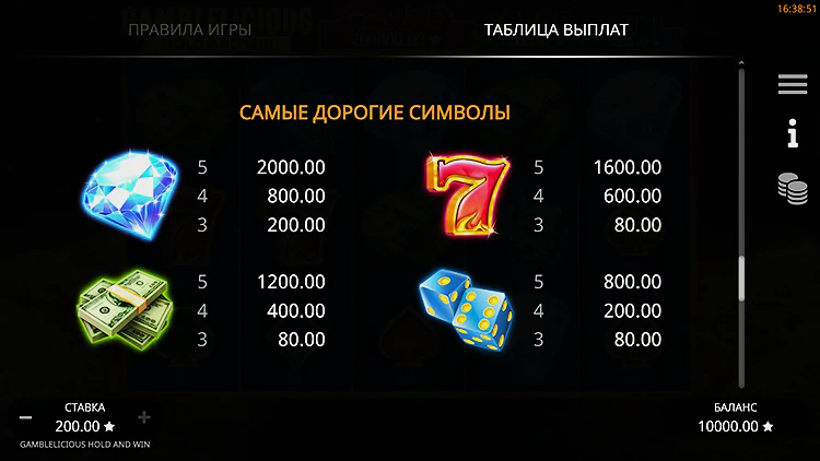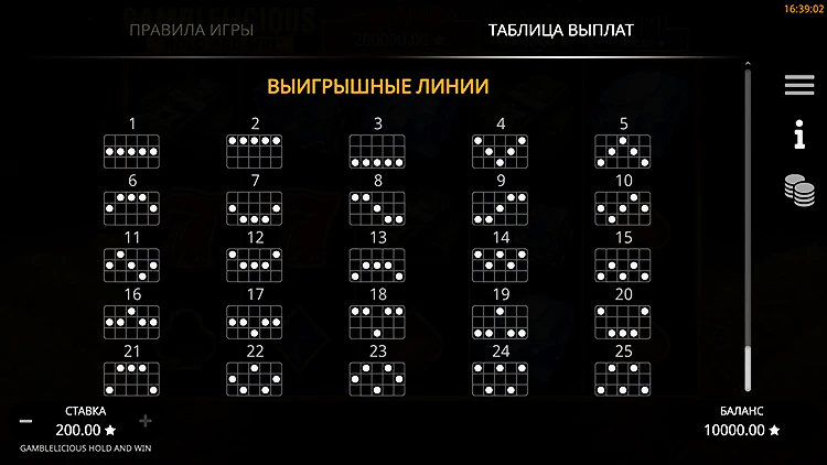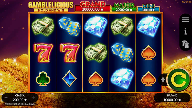 Игровой автомат Gamblelicious Hold and Win не изобретает велосипед, когда дело доходит до макета слота. Это обычная игра 5х3 с 25 фиксированными ставками. На барабанах изображена гора золотых монет, и они заполнены набором знакомых символов.