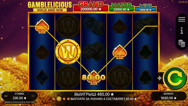 Gamblelicious Hold and Win — ретро-слот от Booming Games, который может принести гору золота. Как показывает слот, вы попадете в колодец Scrooge’s gold, и все, что вам нужно сделать, это выстроить правильные символы. Звучит просто, не так ли? Что ж, это не так просто, учитывая тот факт, что это очень волатильный слот с RTP 95,9%. Выигрыш разыгрывается по 25 линиям выплат в игровом автомате, где по-другому появляется знаменитая функция Hold & Win.
