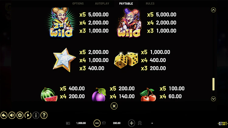 Это игровой автомат со средней волатильностью, 5 линиями выплат и 5 барабанами это невероятно доступный онлайн-слот. Наслаждайтесь классическими фруктовыми изображениями и разумным диапазоном ставок от 1,10 до 10,00 в этом захватывающем бесплатном слоте. Ключевым недостатком является отсутствие бесплатных вращений, но это с лихвой компенсируется символами со стеком, функцией повторных запусков, символами-множителями и бонусным колесом-множителем.