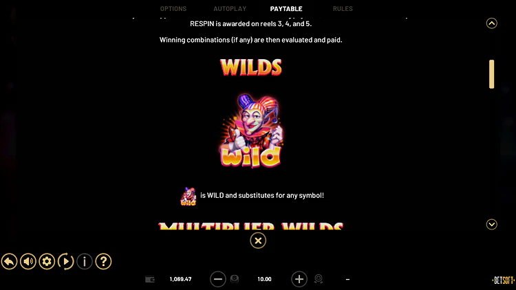 Если вам повезет и на всех барабанах выпадут одинаковые символы, вы не только получите крупный выигрыш, но и получите одно вращение бонусного колеса, которое сделает этот выигрыш еще больше. Благодаря множителю от х2 до х10, полученный вами множитель применяется к вашему выигрышу при запуске.