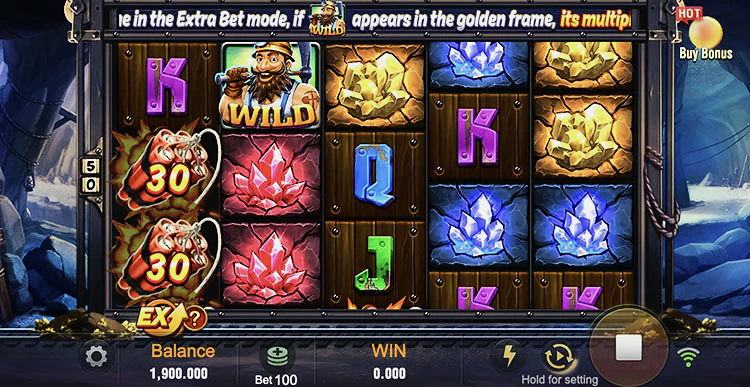 Во время раунда бесплатных вращений на барабанах могут появляться золотые самородки. За каждый собранный самородок начисляется одно очко. Набрав пять очков, вы перейдете на второй уровень, где вам будут начислены пять дополнительных символов старателя. Набрав 10 очков, вы перейдете на третий уровень, где вам будут начислены уже 9 дополнительных символов старателя. Наконец, набрав 15 очков, вы перейдете на четвертый уровень, который предоставит вам 11 дополнительных символов старателя на барабанах. Кроме того, вы получите дополнительный бесплатный спин, если достигнете нового уровня во время последнего бесплатного спина.