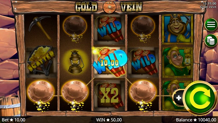 Тема и сюжет игры Gold Vein вращаются вокруг горнодобывающего дела и предлагает множество интересных сюрпризов, которые вы обнаружите в недрах этого слота. Booming Games представляет двух опытных гномов в качестве главных героев, профессионалов в сфере добычи золота.