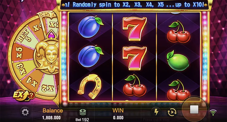 - Колесо умножения активируется при выпадении на весь экран одного и того же символа. Колесо вращается и начисляется множитель до 30х ставки.