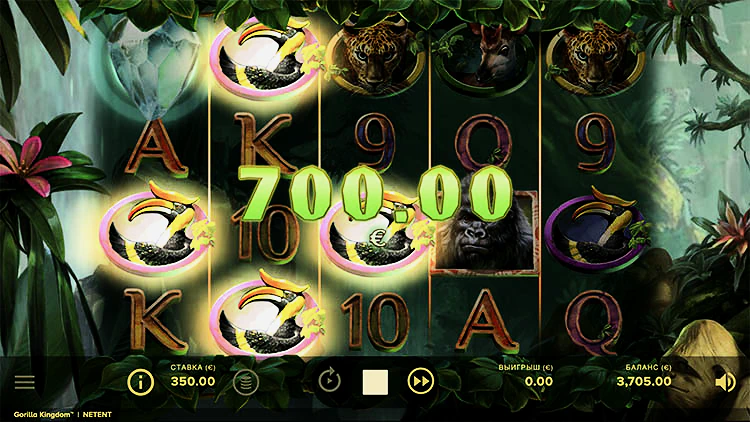 Gorilla Kingdom — это онлайн-слот, созданный NetEnt, в котором представлено множество животных из джунглей. Действие игры разворачивается в формате с 5 барабанами и 4 рядами и использует механику 4096 способов выиграть. Особенности включает в себя обновление символов и бесплатные вращения с неограниченным количеством повторных запусков.