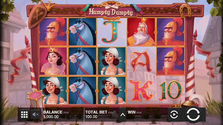 Humpty Dumpty — игровой автомат с пятью барабанами, созданный на классическую тему детских стишков. Обладает 25 линиями выплат и 10 символами, включая королеву, девушку, рыцаря и ложку. обзор поможет детальнее разобраться в возможностях аппарата и его особенностях.