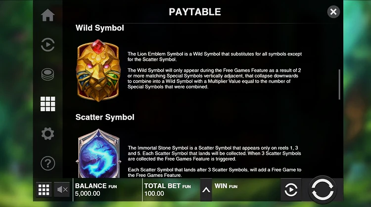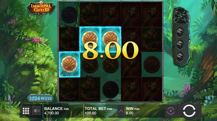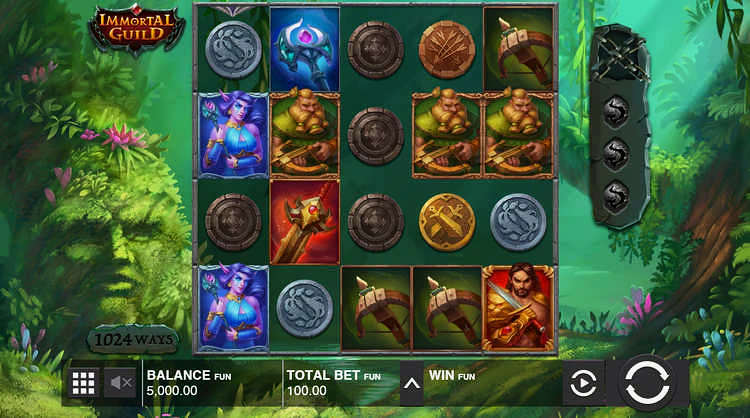 Выигрышные комбинации при игре онлайн бесплатно в слот Immortal Guild набираются путем выпадения совпадающих символов на соседних барабанах, а не их выпадения на одной линии выплат. Таким образом, выигрыши легче получить, чем в других традиционных игровых автоматах.
