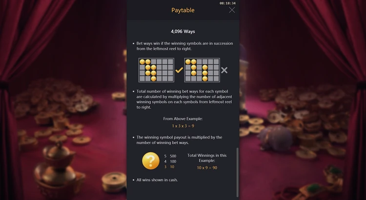Jewels of Prosperity предлагает игрокам необычный подход к выбору размера ставки. Доступ к нему осуществляется с помощью кнопки BET OPTION, которая открывает размеры ставок от 0,01 до 0,10 и 10 уровней. Нажав на любой из них, вы сможете выбрать нужные вам числа.
