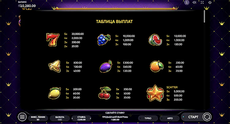 | Звезда (Scatter) | — | 200 | 500 | 5000 |