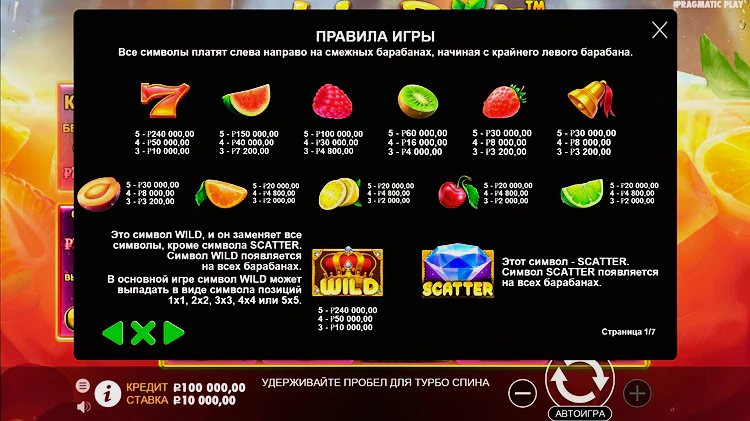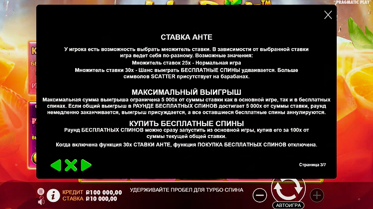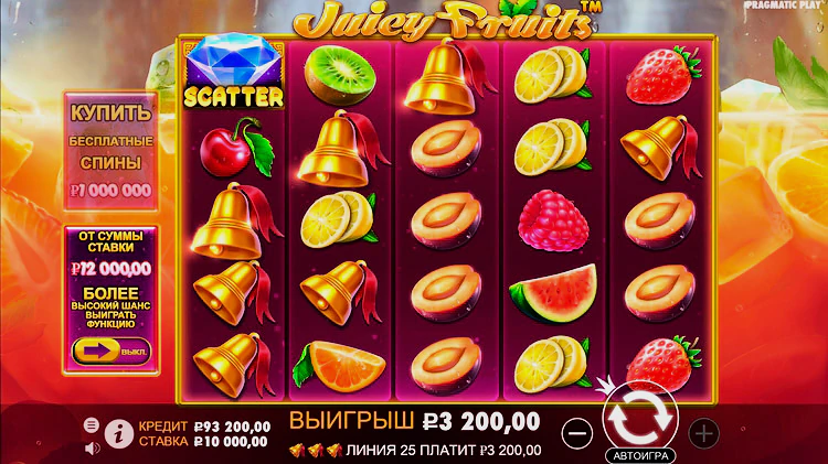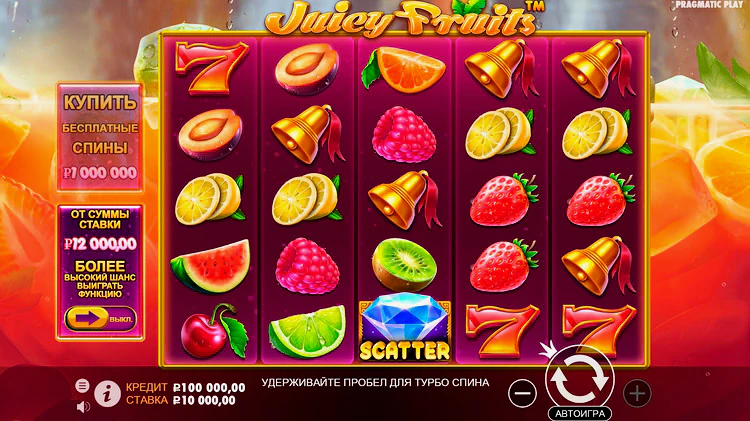 Совсем недавно компания Pragmatic Play, специализирующаяся на разработке софта для гемблинговых площадок, выпустила новый игровой автомат Juicy Fruits. Этот слот визуально погружает игрока в классическую тематику гемблинга — символы с изображениями фруктов выпадают с определенной частотой, формируя победные комбинации, которые могут увеличить размер выигрыша в пять тысяч раз от начальной ставки! Этот множитель является особенностью слота. Играть в игровой автомат Juicy Fruits бесплатно можно на многих площадках онлайн-казино в демонстрационной версии. Но только ставки на реальные деньги способны подарить шанс сорвать крупный куш в игре.