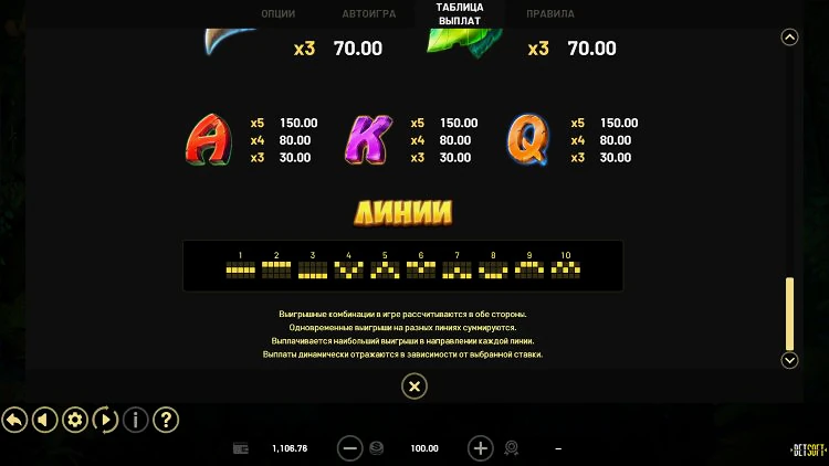 Средний долгосрочный RTP Jungle Stripes составляет 97,03%, что значительно выше среднего показателя для игр такого типа. Средняя волатильность этой игры обещает сбалансированный игровой процесс и возможность крупных выигрышей, хотя их почти всегда мало, так что потребуется терпеливая игра.