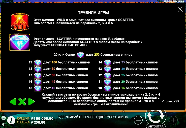 Диапазон ставок на каждый спин составляет от 0,50 до 250 монет, что дает игрокам гибкость в выборе ставок.