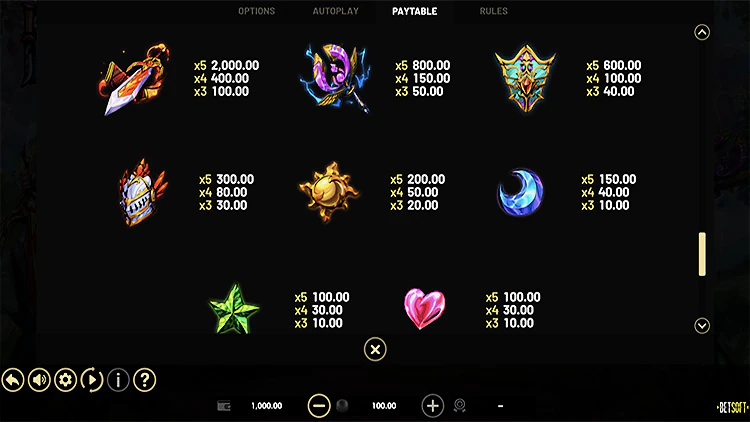 Играя в Kensei Blades, игроки могут сделать минимальную ставку 1,00 и максимальную ставку 50,00. Стоит отметить, что это довольно высокая минимальная ставка по сравнению со многими другими бесплатными игровыми автоматами, которые могут подойти только более опытным игрокам.