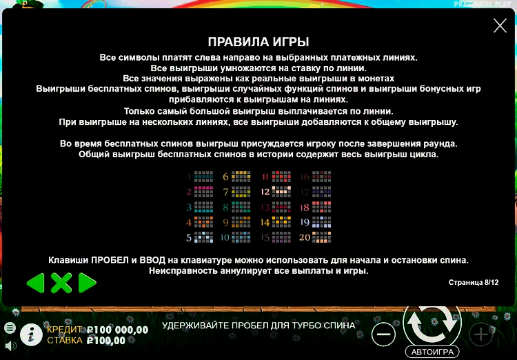 | Радуга (Wild) | 20 | 500 | 2 000 | 4 000 |