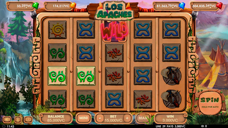 Для гемблеров, которым нравится стиль американских прерий, идеальным решением станет игровой автомат Los Apaches, бесплатно играть в который можно уже сейчас на большинстве крупных онлайн-площадках казино. Приключения американских индейцев, которые появляются на барабанах в качестве символов, дополнены картинками тотемов, лошадей, курительной трубки мира.