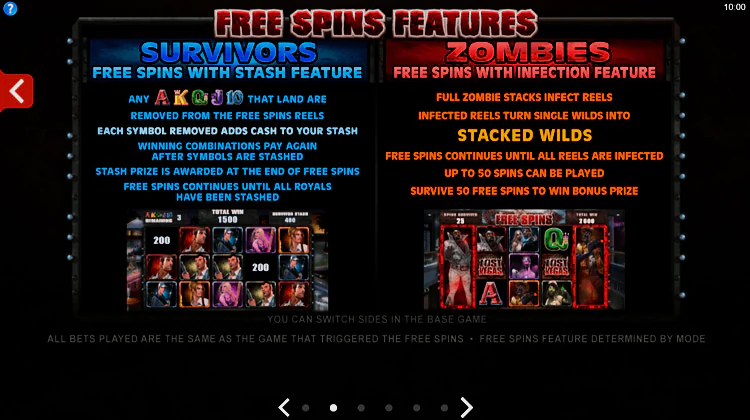 Игра предлагает клиентам 2 режима. При игре «за» зомби появляются картинки с мертвецами. При игре «за» людей можно увидеть картинки с вооруженными выжившими.