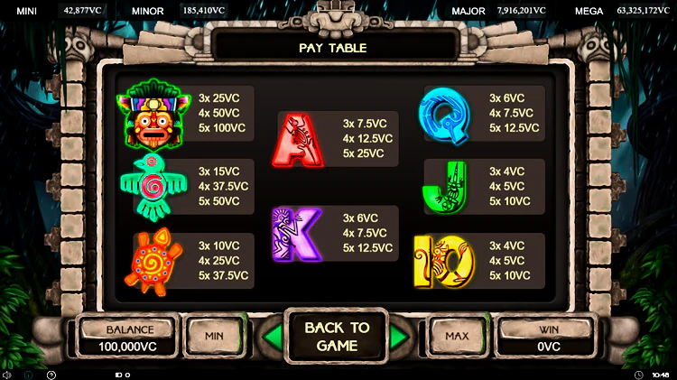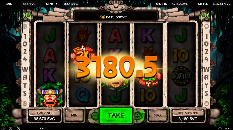 Аппарат представляет собой комбинацию стилей: Древний мир, Джунгли, Приключения. Если говорить о денежных лимитах, то входной порог начинается с пятидесяти центов, а заканчивается суммой в 150 долларов. Слот разработан на движке HTML5, что позволяет активировать его как на десктопе, так и на мобильных устройствах. Ключевая особенность Lucky Jungle 1024 – прогрессивно увеличивающийся множитель по одной ставке.
