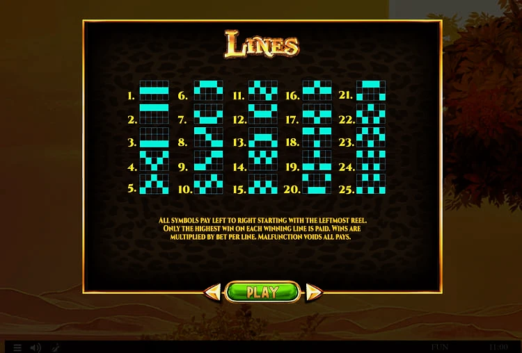 В игре 25 фиксированных линий выплат.