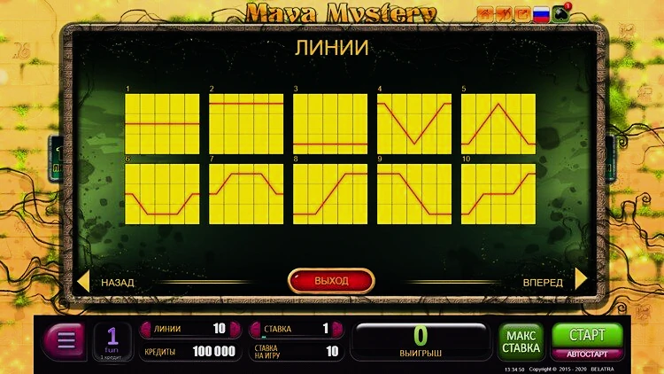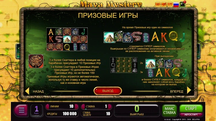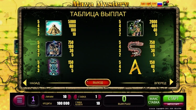 Несмотря на то, что в нем нельзя поставить меньше 1 монеты, лимит ставок относит демо-версию слота Mayan Mystery к категории игр со средней волатильностью, оставляя любителей ставить огромные суммы без возможности сделать это. Тем не менее, они могут попробовать себя в игре с меньшими суммами.