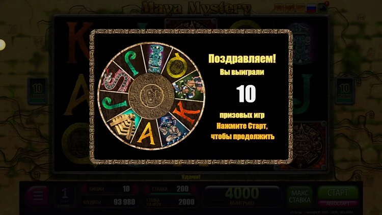 Коэффициент возврата к игроку довольно разочаровывает и не является основной причиной для игры, так как он составляет 91,84%, что не совсем соответствует современным стандартам. Поэтому играть с минимальной ставкой в Mayan Mystery невыгодно.