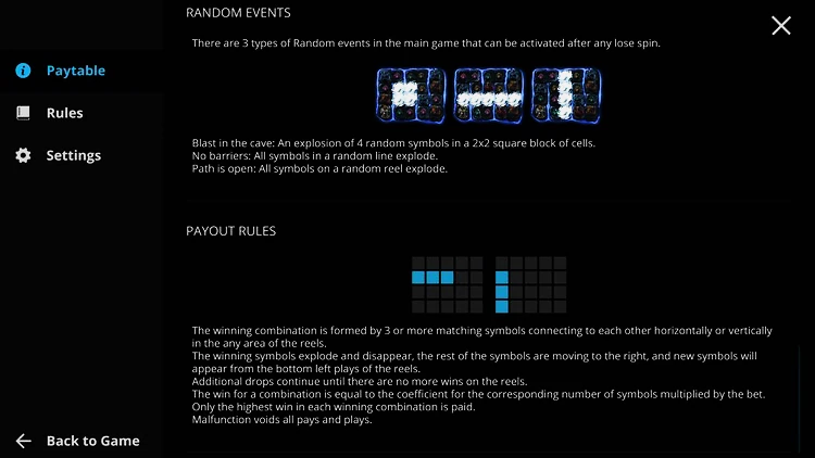 - Голубая пещера: За каждое бесплатное вращение на барабанах в случайных местах появляются 3 символа Cyan Wild.