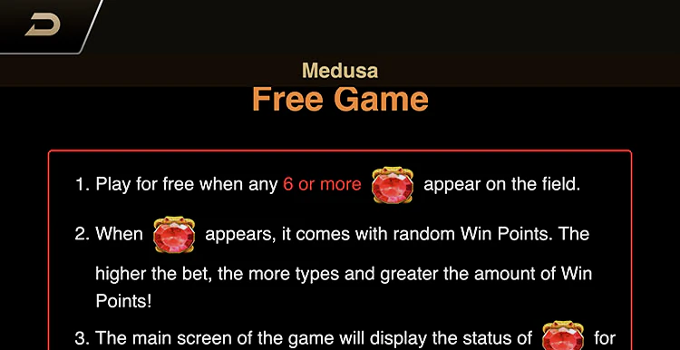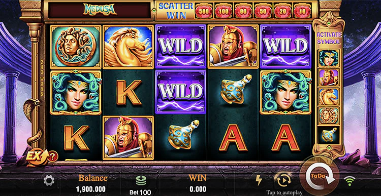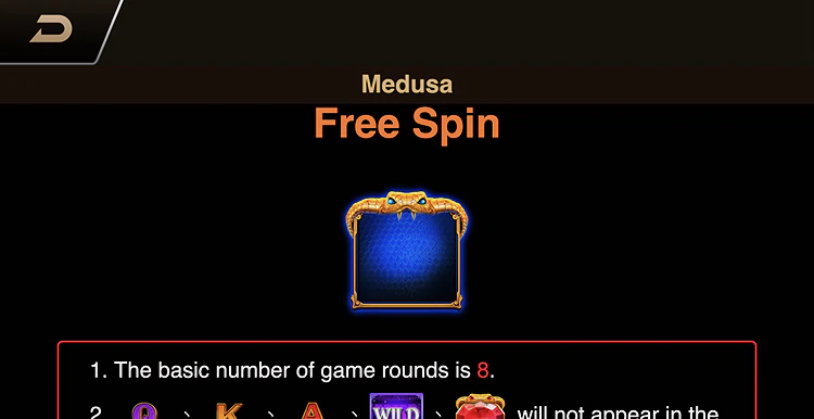 Для карманной игры Medusa, безусловно, полна бонусных функций. И начинаются они с Wild, который появляется только на 2, 3 и 4 барабанах, но может заменить любой символ в таблице выплат. Единственное, что он не может — это скаттер игры.
