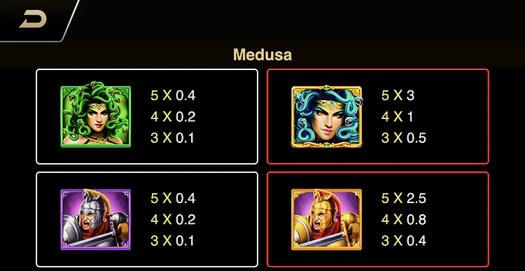 Medusa — это онлайн-слот, разработанный компанией PG Soft. Это игра средней волатильности с пятью барабанами, 30 фиксированными линиями выплат и RTP 95,29%. Основанная на греческой легенде, игра включает в себя вайлды, скаттеры, мини-барабан, модификаторы барабанов, бесплатные вращения, дополнительные вайлды и множители.
