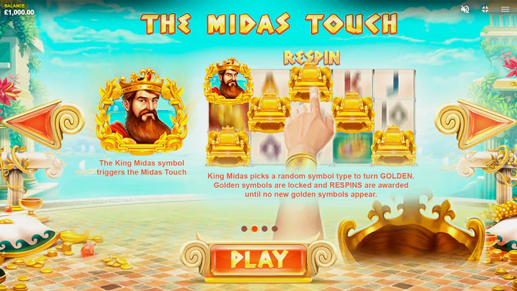 Давно известно, что провайдер Red Tiger всегда выпускает визуально потрясающие игры и Золото Мидаса – не исключение.
