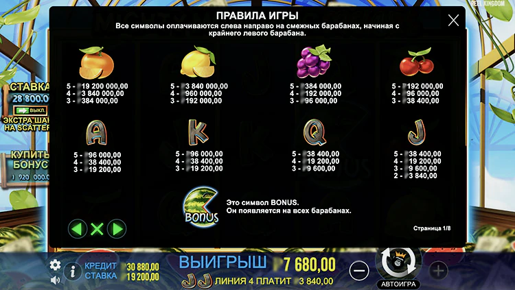 В игровом автомате Mighty Munching Melons есть несколько бонусных функций: