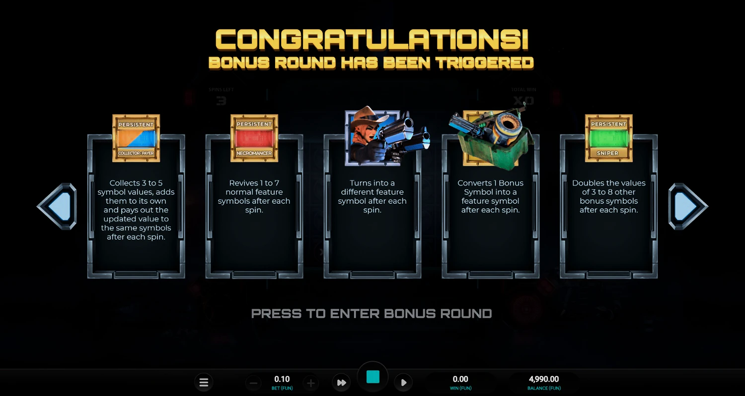 Так же, как и в предыдущей версии тайтла, бонус респина запускается случайным образом после любого вращения. Самый присутствующий символ в сетке останется, а все остальные символы будут повторены. Во время повторной игры могут выпадать символы с множителем, которые увеличивают счетчик растущего множителя. Они присуждают повторный запуск точно так же, как и липкий символ. Однако эти символы не остаются липкими, а приносят респин. Раунд заканчивается, когда больше не выпадает ни одного липкого символа.