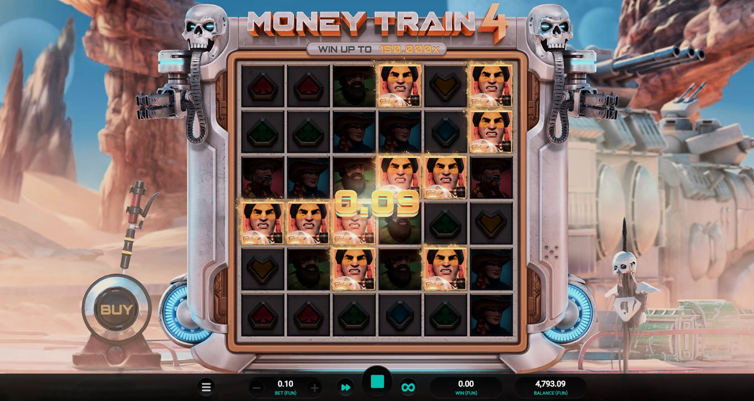 В этой игре отсутствует базовый вайлд. Однако, модификаторов и повторных запусков более чем достаточно, чтобы компенсировать отсутствующий символ. Диапазон ставок на Money Train 4 начинается от 0,10 фунта стерлингов.