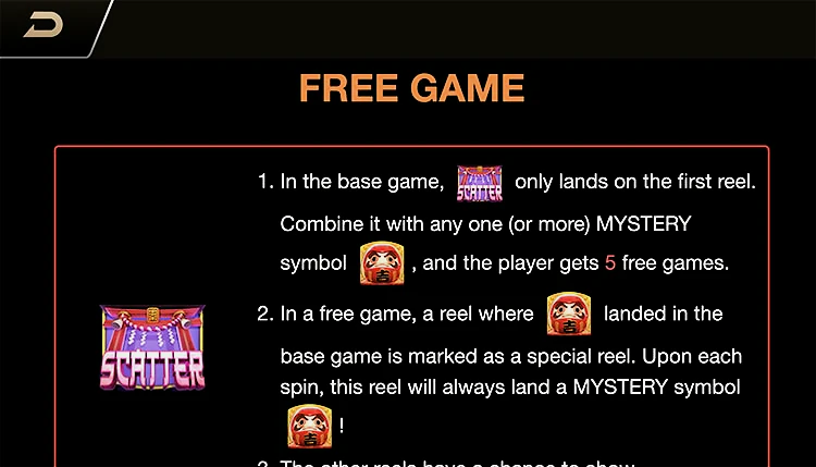 - Scatter (золотая монета) может выпадать только на первом барабане, и в сочетании с одним или несколькими загадочными символами игроки получают 5 бесплатных вращений.