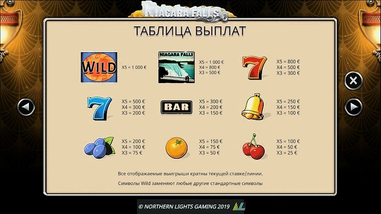 Три и более совпадающих символа принесут вам выплаты в этом онлайн-слоте. Самый щедрый приз — 10-кратное увеличение вашей ставки, которое дает символ Ниагарского водопада. Хотя это и не слишком щедро, но это довольно низкая волатильность слота, где выигрыши со временем растут. Не говоря уже о том, что в бонусной игре можно выиграть все более крупные призы.