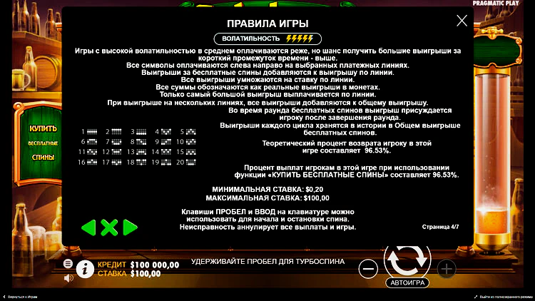 Pragmatic play создает лучшие игровые автоматы по мнению опытных гемблеров. Их главное преимущество – доступная стоимость открутки. Так и здесь: в слоте Octobeer Fortunes минимальный депозит составляет всего 20 центов. Стоимость максимальной ставки – 100 долларов. Средний процент отдачи (96,5) делает слот относительно безопасным для новичков. Низкая вариация призовых комбо (4500 кф) завершает открутку в тот момент, когда игрок набирает максимальное значение. Все бонусные символы при этом сгорят.