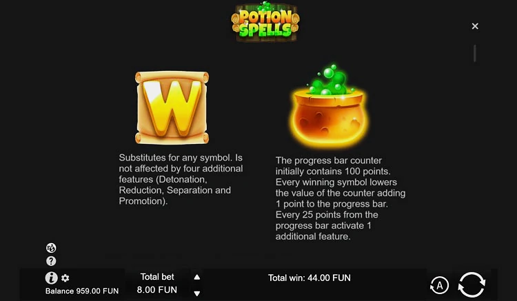 Бонусные функции в игровом автомате Potion Spells предоставляют игрокам возможность получить дополнительные выигрыши и активировать интересные механики. Вот более подробное описание каждой: