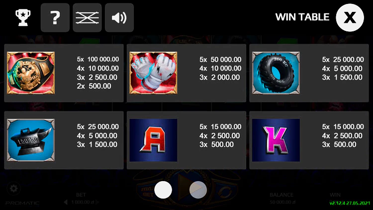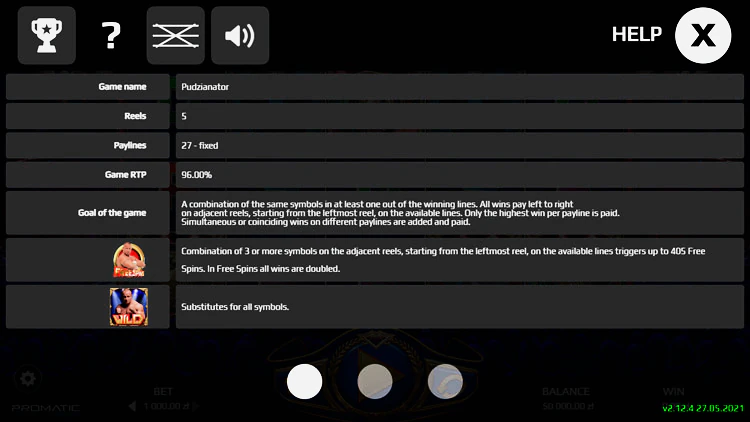 Механический процесс данного видеослота классический. Он содержит в себе большое количество портретов Мариуша Пудзяновски. Барабаны на игровом поле работают медленно, а пролог перед игрой понравится всем, ведь он состоит из сцены фильма о мастере Пудзяновски. После запуска на экране появятся иконки с различными предметами, связанными со спортом и соревнованиями. Например, перчатки боксера, огромная шина, внушительные гири.