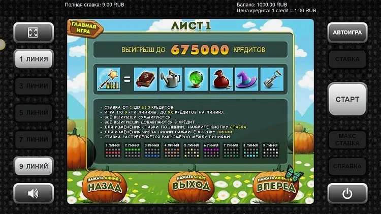Тематика бесплатного онлайн слота Pumpkin Fairy — это волшебный мир, где перед нами предстает милая ведьма. Она выращивает тыквы в своем саду. В игре присутствует тематическое музыкальное сопровождение, которое не дают игроку скучать. Его можно отключить в любой момент. Когда пользователь срывает куш, то в игровом автомате активируются анимированные символы и запускается дополнительный уровень.