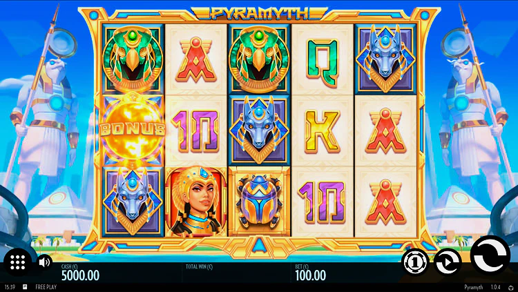 Статус одного из самых интересных египетских аппаратов слот заработал не просто так. Прежде всего, автомат Pyramyth предлагает классический формат зачисления призов. При появлении от 3 одинаковых символов на активной линии, участник может рассчитывать на награду. Важно, что выплаты тут осуществляются слева направо. Кроме того, Pyramyth имеет несколько дополнительных особенностей.