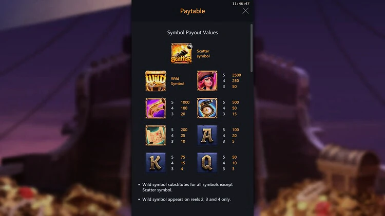 В Queen of Bounty есть символы, состоящие из разнообразных тематических изображений: пиратов, сундуков с сокровищами, карт и других элементов, относящихся к тематике. Все символы тщательно проработаны и органично вписываются в общую картину игру.