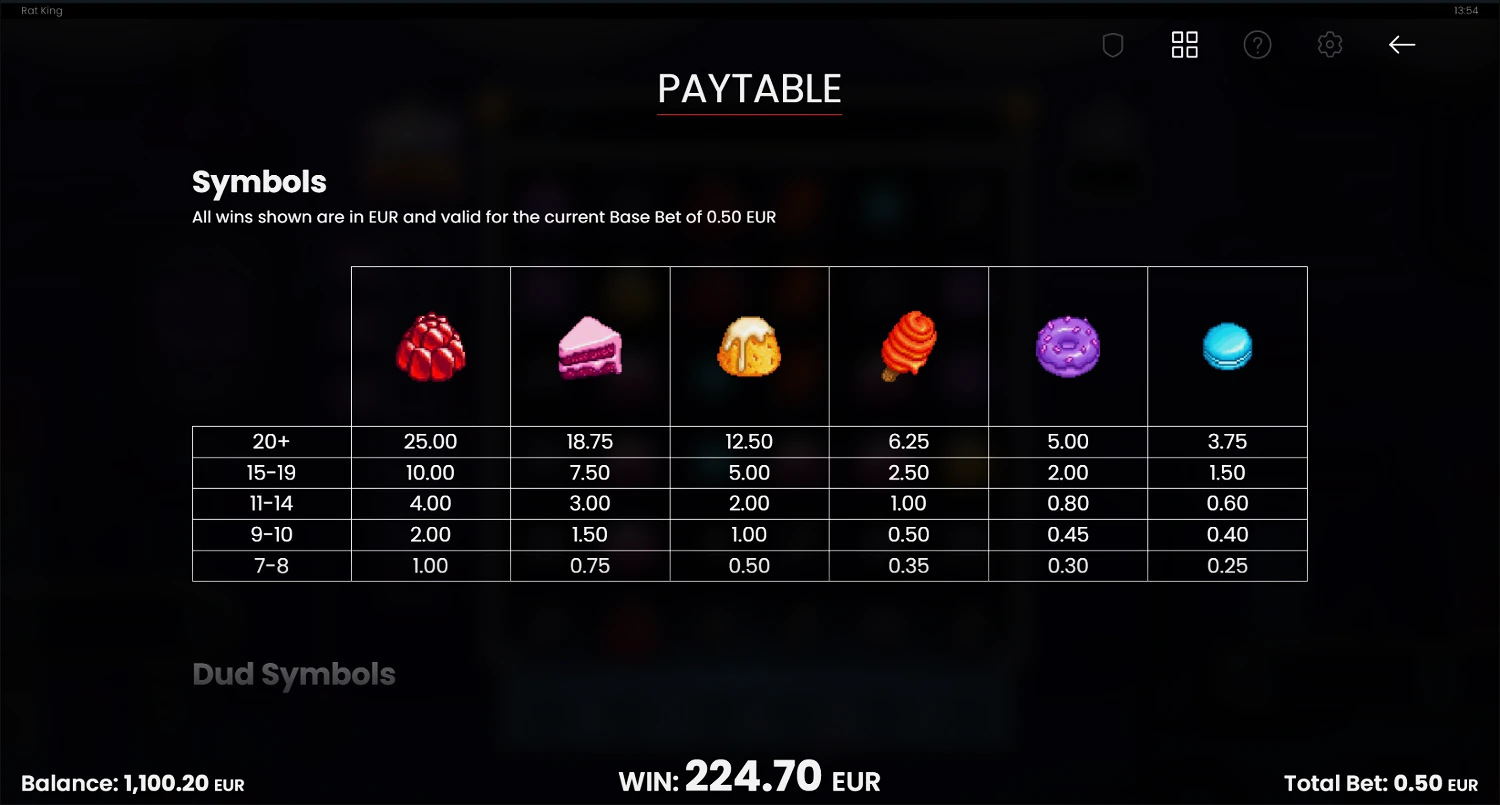 Таким образом, основные символы игрового автомата Rat King могут приносить игрокам достойные выигрыши, особенно если удастся собрать комбинации из пяти символов на одной из активных линий.
