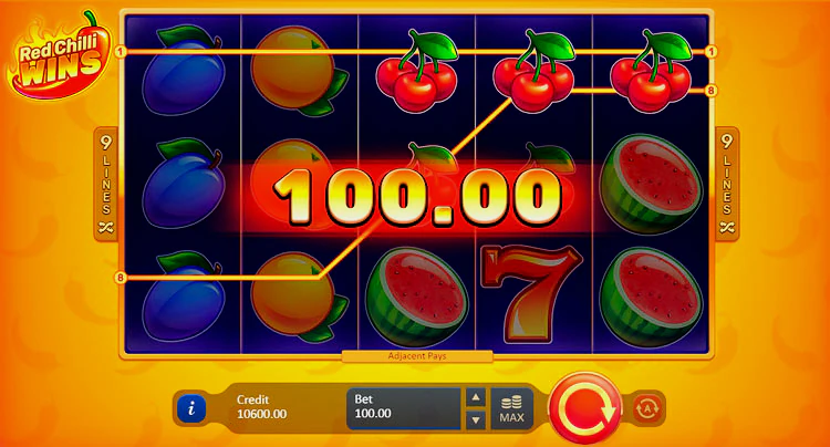 Red Chilli Wins — это онлайн-слот, созданный компанией Playson. Это игра со средней и высокой волатильностью, пятью барабанами, девятью фиксированными линиями выплат и RTP 96,07%. Основанная на классической фруктовой тематике, игра включает в себя механику выигрышей Pays Both Ways и вайлды с множителями.