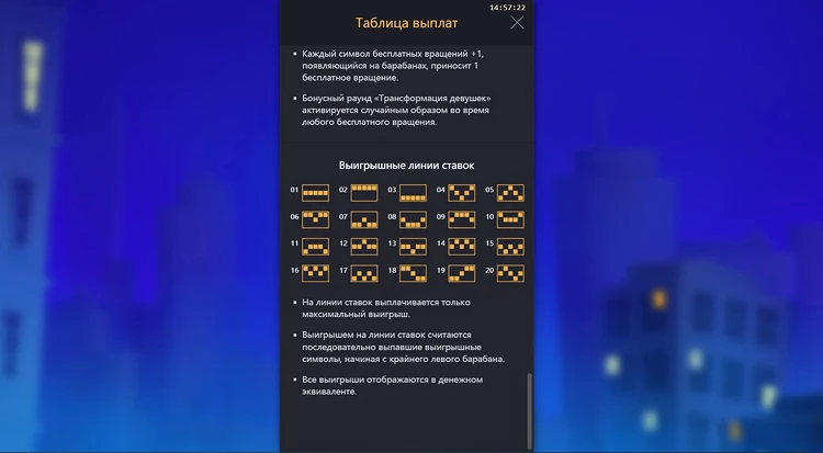 Слот цепляет стильной графикой и плавной анимацией. Геймплей динамичный и сбалансированный: бонусы заходят регулярно и добавляют драйва. Подходит под разный темп игры, давая стабильный интерес и достойный потенциал выигрыша.