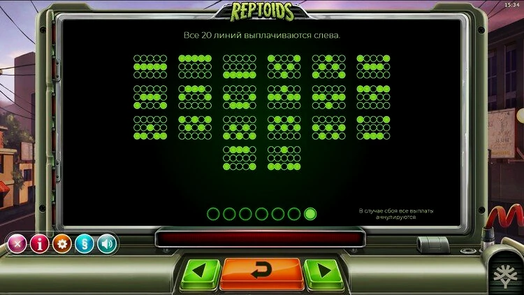 Благодаря 20 линиям выплат Reptoids предлагает игрокам множество шансов на выигрыш. Игра обладает низкой, стремящейся к средней, волатильностью, обеспечивая сбалансированный уровень риска. Кроме того, процент возврата к игроку довольно высок — 96,1%.