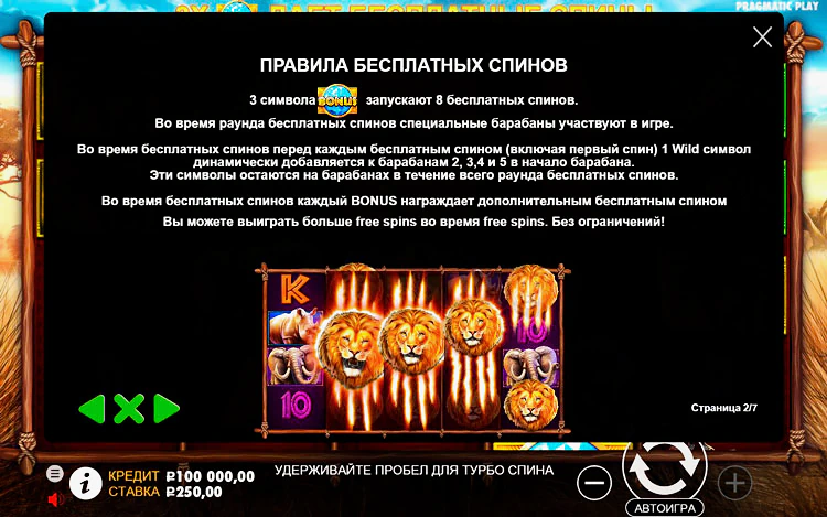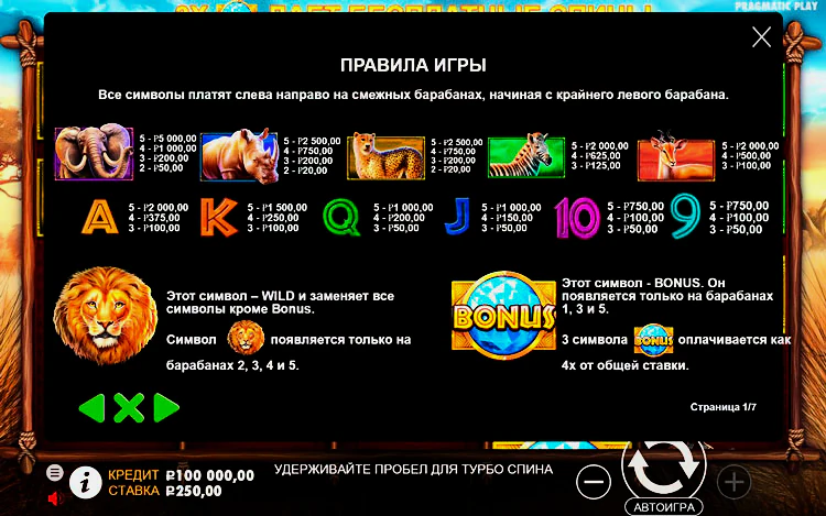 Safari King — это онлайн-слот с 50 игровыми линиями и фиксированной ставкой, поэтому у вас есть множество способов выиграть, когда вы вращаете барабаны. Вы можете поставить от 50 до 250 монет за спин, что делает эту игру идеальной как для хайроллеров, так и для игроков в копеечные слоты.