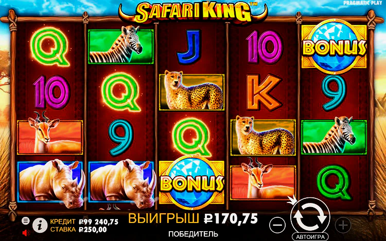 Игровой автомат Safari King от Pragmatic Play — обладает 50 линиями и высоким уровнем волатильности. Этот слот — идеальная возможность отправиться на сафари, где игрока встретят дикие животные, приносящие щедрые выплаты. Максимальная выплата за вращение — х1000, а уровень отдачи выше 96%. Также есть бонусный уровень с бесплатными вращениями.