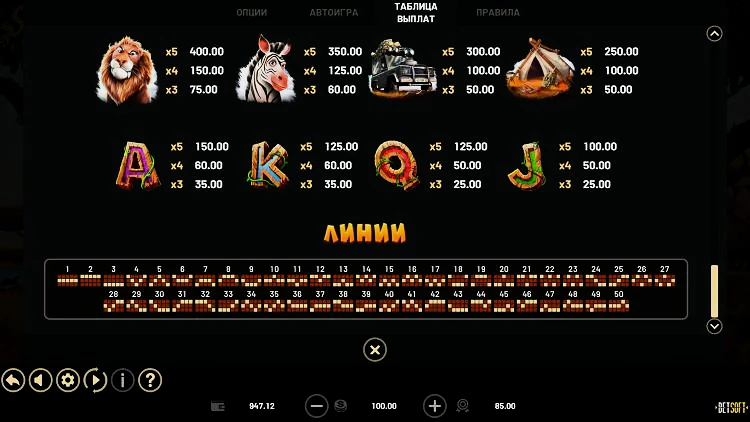 Safari Sam 2 — это онлайн слот, созданный компанией Betsoft. Автомат имеет 5 барабанов, 3 ряда и 50 линий выплат. Среди игровых функций — каскадные барабаны, вайлды, скаттеры, бесплатные вращения. RTP составляет 96,3%, и это слот со средней волатильностью. Во время обзора подробнее рассмотрим все преимущества игрового автомата.