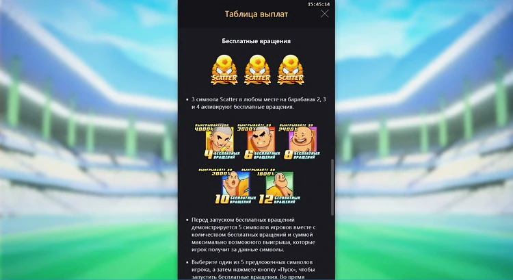 Символ трофея — это символ разброса. Как и дикий, он появляется только на центральных трех барабанах. Если на этих барабанах выпадут три скаттера в любой позиции, вы активируете бонусную функцию бесплатных вращений.