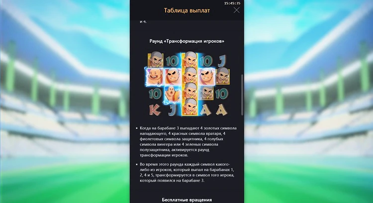 Футбольный мяч является диким символом игры. Он появляется только на втором, третьем и четвертом барабанах, поэтому его нет в таблице выплат, однако он может заменять все остальные игровые символы, кроме скаттера, и приносить один или несколько выигрышей при каждом своем появлении.
