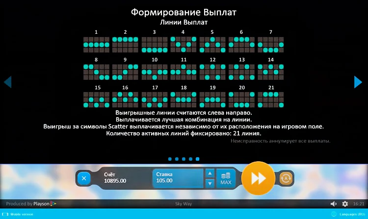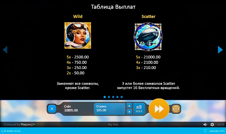 Сегодня вам предстоит подняться высоко в облака вместе с изобретателями первых летательных аппаратов в игре Sky Way, слоте с 21 линией выплат от Playson. Парите среди дирижаблей и самолетов, чтобы найти вайлды, скаттеры и бесплатные спины, а функция Gamble поможет вам подняться ввысь, увеличив выигрыш в два раза. Просто не смотрите вниз, если боитесь высоты, пока вращаете барабаны, чтобы выиграть действительно большие деньги.