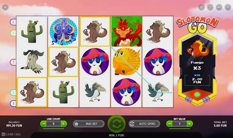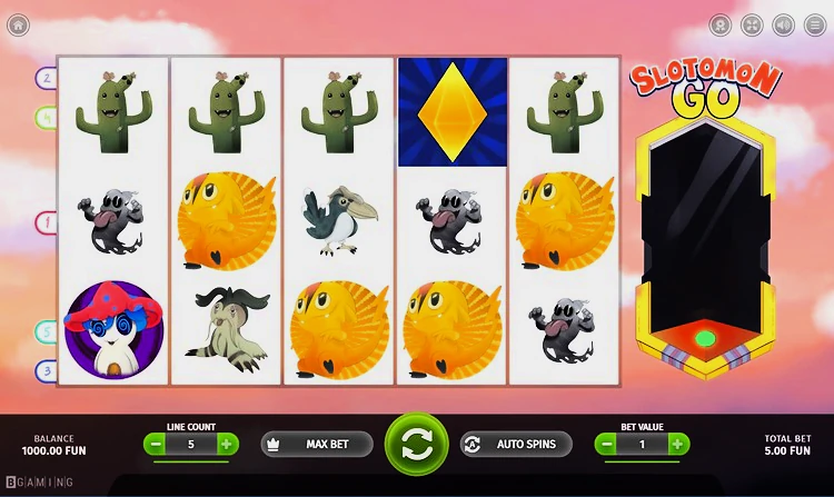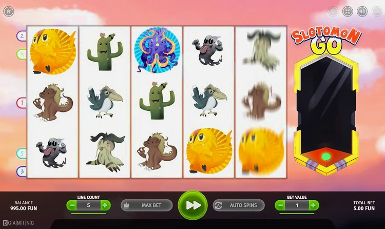 Разработанный компанией BGaming, Slotomon Go — это увлекательный слот классического формата 5×3 с пятью активными линиями выплат. С достаточно высоким процентом отдачи игроку 97,28% и средневысокой волатильностью, игра предлагает разнообразные специальные и дополнительные функции, включая вайлды, бесплатные вращения, множители, символы разброса и особенные символы.